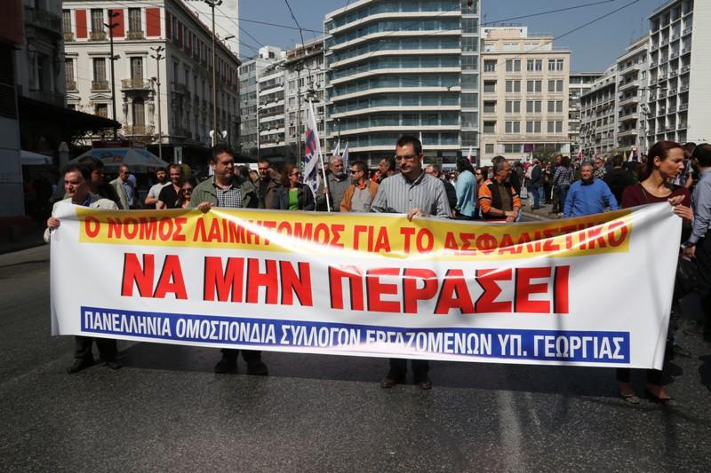 Με συλλαλητήρια και πορείες διαμαρτυρίας έξω από τη Βουλή κορυφώθηκαν οι κινητοποιήσεις, στο πλαίσιο της 24ωρης απεργίας που κήρυξε η ΑΔΕΔΥ ενάντια στο ασφαλιστικό που προωθεί η κυβέρνηση.