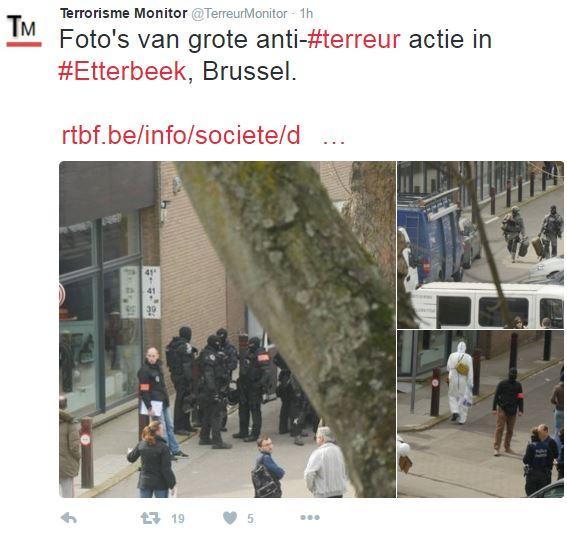 Η βελγική αστυνομία, υποστηριζόμενη από σκοπευτές, διεξήγαγε στο Ετερμπέκ έρευνα σε κτίριο από το οποίο απομάκρυνε τους ενοίκους του. Το κτίριο, ένα συγκρότημα διαμερισμάτων με ένα κατάστημα στο ισόγειο, αποκλείστηκε από την αστυνομία και ερευνητές εθεάθησαν στην είσοδο του κτιρίου. Η αστυνομία είπε ότι ελεύθεροι σκοπευτές είχαν επίσης αναπτυχθεί.