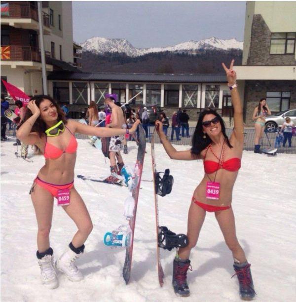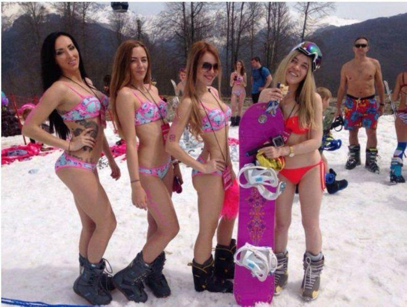Χίλιες πανέμορφες και με εκπληκτικά κορμιά Ρωσίδες, έβγαλαν τις φόρμες του σκι και έμειναν στο χιόνι μόνο με τα μαγιό τους. Άρχισαν να ποζάρουν και να επιδεικνύουν τα υπέροχα κορμιά που τόσο απλόχερα τους χάρισε η φύση.