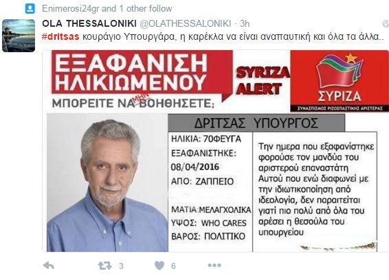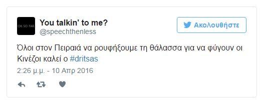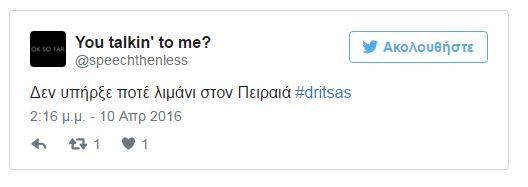 Το hashtag #Dritsas είναι δεύτερο πιο δημοφιλές.