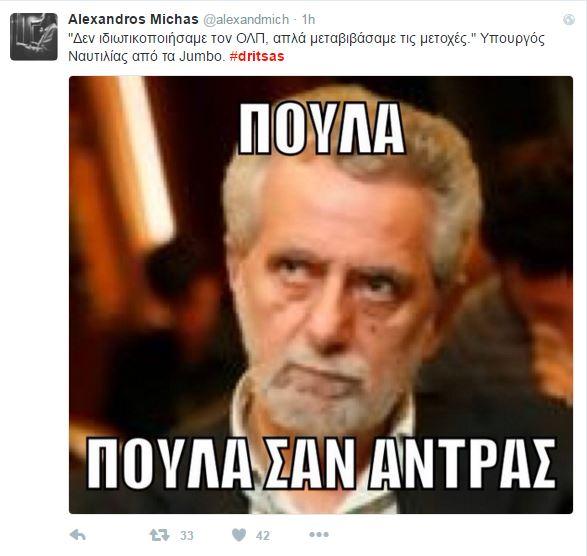 …Πάρτι έχουν στήσει στο Twitter οι χρήστες, με αφορμή το νέο αλαλούμ από τις πρωινές δηλώσεις Δρίτσα για τον ΟΛΠ.
