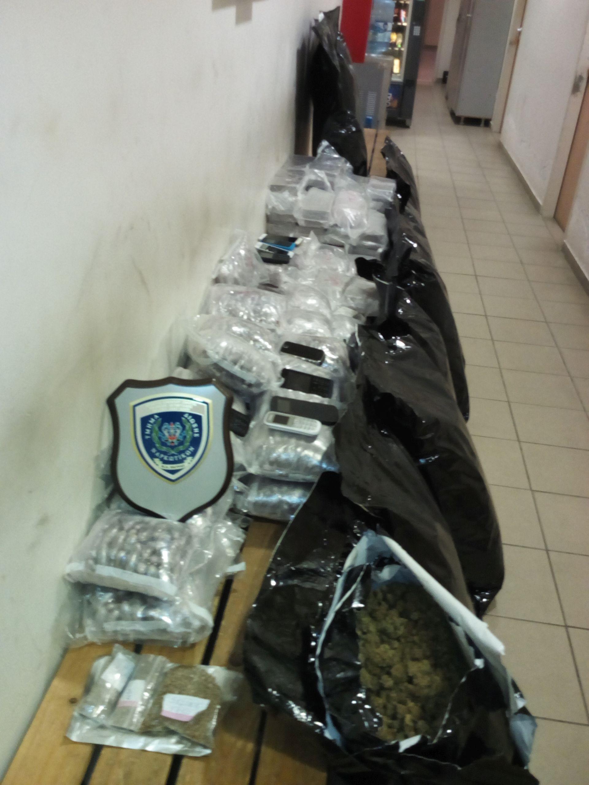 Σύμφωνα πάντα με το Λιμενικό, μέσα στο φορτηγό εντοπίστηκαν 10 πλαστικές σακούλες που περιείχαν χασίς υδροπονικής καλλιέργειας, 34 πλαστικές συσκευασίες που περιείχαν σφαιρίδια χασίς, 40 πλαστικές συσκευασίες που περιείχαν χασίς σε μορφή πλάκας, τρεις πλαστικές συσκευασίες που περιείχαν σπόρους χασίς, πέντε κινητά τηλέφωνα και το χρηματικό ποσό των 2.200 ευρώ.