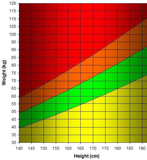 Το πράσινο χρώμα δείχνει το ιδανικό βάρος, το πορτοκαλί χρώμα δείχνει ότι είστε υπέρβαροι, το κόκκινο χρώμα ότι είστε παχύσαρκοι και το κίτρινο χρώμα ότι βρίσκεστε στο άλλο (επίσης ανθυγιεινό) άκρο του φάσματος και είστε λιποβαρείς.