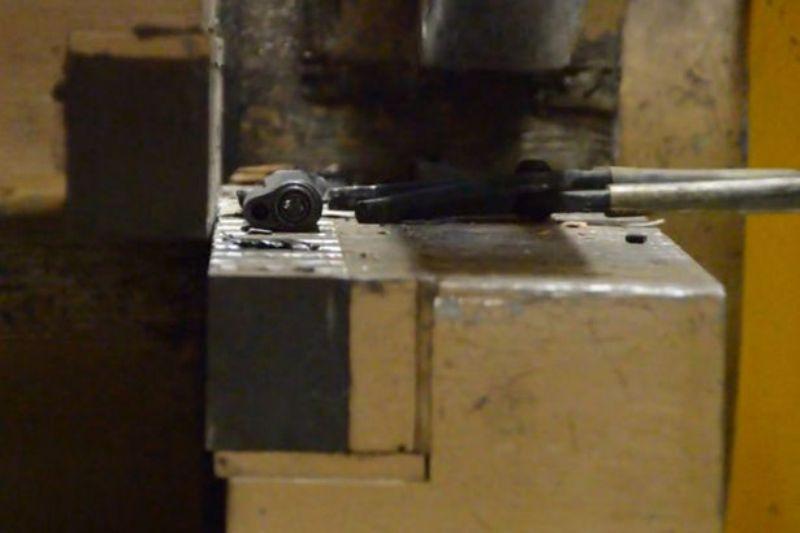 Σε ένα ειδικό εργαστήριο όπου υπάρχει μια τεράστια πρέσα, που μπορεί να ασκήσει πίεση μέχρι και 4,5 τόνων, τα όπλα καταστρέφονται ένα προς ένα. Τοποθετούνται μέσα στην πρέσα η οποία σχεδόν τα πολτοποιεί. Διαλύει τις κάνες, τα κοντάκια και κάθε σημείο του όπλου. Μετά την καταστροφή του κάθε όπλου άλλοι υπάλληλοι της Scotland Yard, ελέγχουν ότι έχουν διαλυθεί πλήρως και δεν μπορούν πλέον να χρησιμοποιηθούν.
