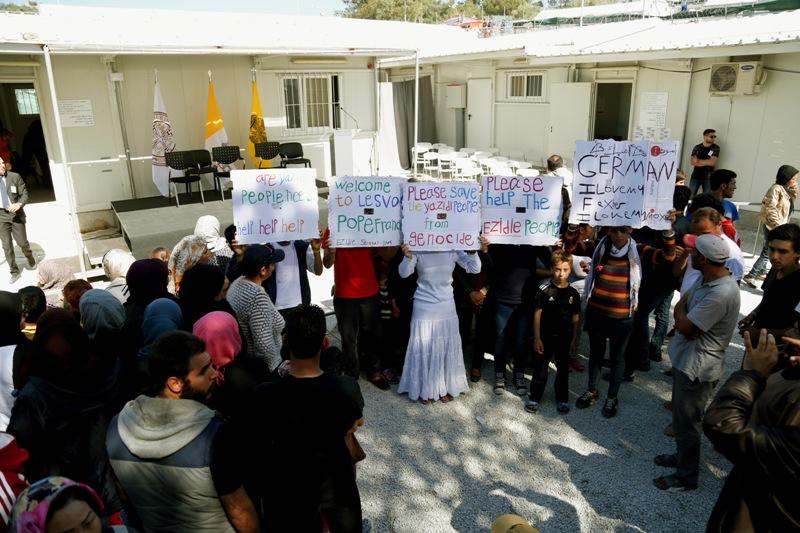 «Βοήθεια, βοήθεια, βοήθεια», «Καλώς ήλθες στη Λέσβο Πάπα Φραγκίσκο, σε παρακαλώ βοήθησέ μας», ανέφεραν χαρακτηριστικά ορισμένα από αυτά