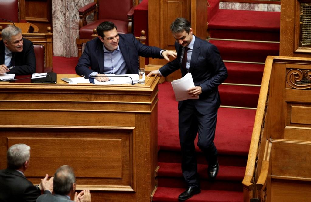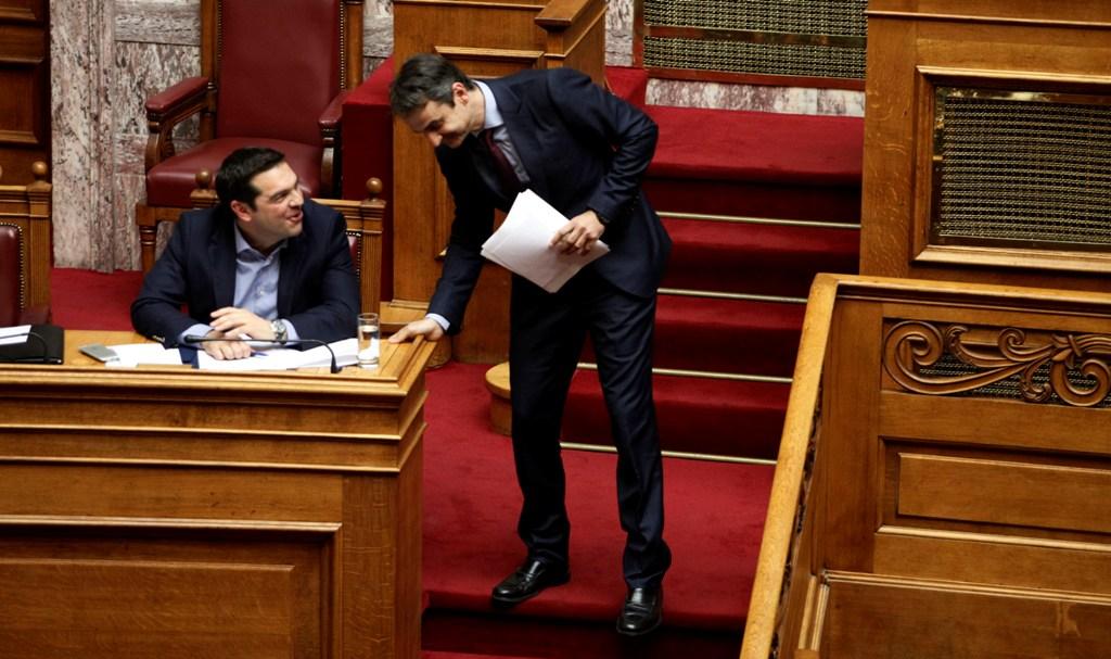 Στο «πόδι» τα είπαν για λίγο Τσίπρας και Μητσοτάκης στη Βουλή, κατά την διάρκεια της συζήτησης για την ασφάλεια.