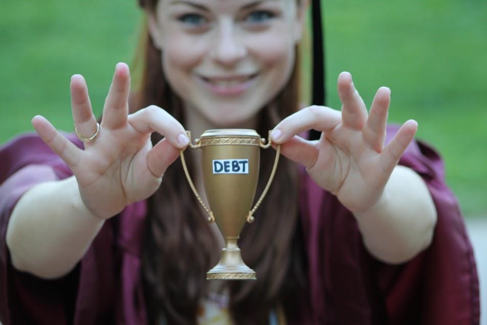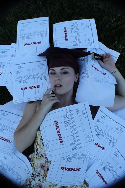 Με την ειρωνική λεζάντα τα χρέη είναι σέξι, η απόφοιτη σε μία φωτογραφία ασκεί κριτική στο σύστημα που χρεώνει τους νέους της χώρας με μεγάλα ποσά πριν ακόμη ξεκινήσουν την εργασιακή τους καριέρα.