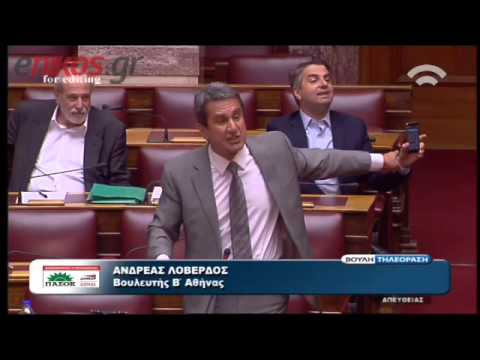 Τη γνωστή φράση «άντε γεια» χρησιμοποιήσε ο κοινοβουλευτικός εκπρόσωπος της Δημοκρατικής Συμπαράταξης Ανδρέας Λοβέρδος απευθυνόμενος προς τον υπουργό Οικονομικών Ευκλείδη Τσακαλώτο.