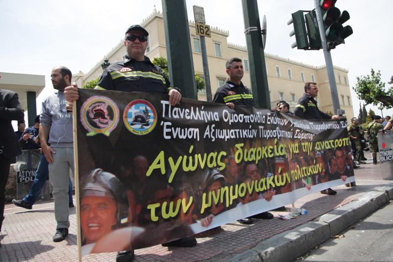 Συνδικαλιστές της αστυνομίας και των άλλων σωμάτων ασφαλείας, καθώς και της πυροσβεστικής υπηρεσίας, πραγματοποίησαν αιφνιδιαστική παράσταση διαμαρτυρίας μπροστά στην είσοδο της Βουλής, επί της Βασιλίσσης Σοφίας. Αμέσως περικυκλώθηκαν από συναδέλφους τους των ΜΑΤ, καθώς το συγκεκριμένο σημείο αποτελεί «διακεκαυμένη ζώνη» λόγω των αντιδράσεων για την ψήφιση του Ασφαλιστικού.
