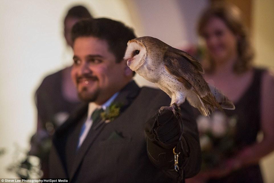 Μια κουκουβάγια παρέδωσε τα δαχτυλίδια γάμου στον κουμπάρο, κατά την διάρκεια της τελετής.