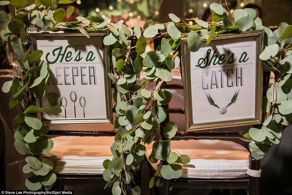 Το γράμμα «S» που κυριαρχούσε παντού στην αίθουσα όπως το μονόγραμμα του οίκου Σλίθεριν, συμβόλιζε το πρώτο γράμμα των ονομάτων του ζευγαριού (Stephanie, Samuel).