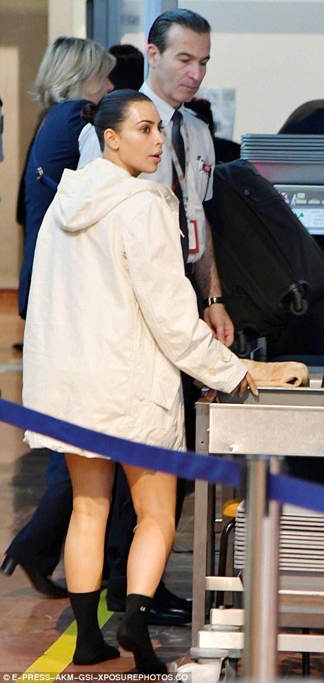 Όπως όλοι οι επιβάτες αεροπορικών γραμμών, έτσι και η Κιμ Καρντάσιαν κλήθηκε να βγάλει τα παπούτσια της κατά την διάρκεια του ελέγχου στο αεροδρόμιο της Κυανής Ακτής, στη Γαλλία.