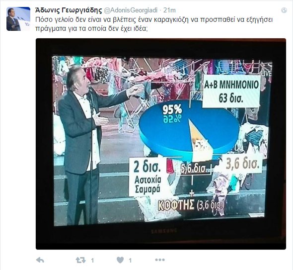 Ο αντιπρόεδρος της ΝΔ γράφει σχολιάζοντας την εκπομπή του Λάκη Λαζόπουλου «πόσο γελοίο δεν είναι να βλέπεις έναν καραγκιόζη να προσπαθεί να εξηγήσει πράγματα για τα οποία δεν έχει ιδέα;».