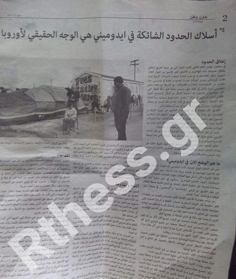 Μία εφημερίδα γραμμένη στα αραβικά κυκλοφόρησε στην Ειδομένη, λίγες ώρες προτού εκκενωθεί ο καταυλισμός.