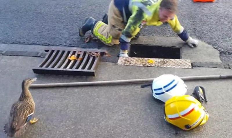 Πυροσβέστες στη Νέα Ζηλανδία βοήθησαν μια μαμά πάπια να «σώσει» τα 8 παπάκια της από το σιφόνι όπου είχαν πέσει. Στο βίντεο που εδώ και λίγες ώρες έχει γίνει viral βλέπουμε τους πυροσβέστες να ανασύρουν από ένα σιφόνι σε κεντρικό δρόμο τα μικρά παπάκια γλιτώνοντάς τα από βέβαιο θάνατο. Ένας από τους πυροσβέστες κατέβηκε στο σιφόνι και μάζεψε από μέσα τα παπάκια δίνοντας τα σε έναν συνάδελφό του για να τα φροντίσει.