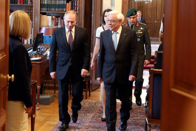 Στην Αθήνα έφτασε το απόγευμα ο Πρόεδρος της Ρωσίας Βλαντιμίρ Πούτιν και κατευθείαν μετέβη στο Προεδρικό Μέγαρο όπου τον υποδέχθηκε ο Πρόεδρος της Δημοκρατίας Προκόπης Παυλόπουλος. Στη συνέχεια ο κ. Πούτιν μετέβη στο Μέγαρο Μαξίμου όπου και είχε τετ α τετ συνάντηση με τον πρωθυπουργό Αλ. Τσίπρα.