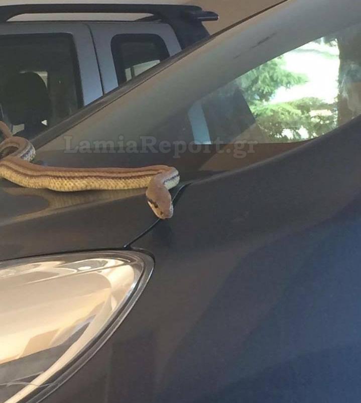 Όταν οι άνθρωποι πήγαν να πάρουν το αυτοκίνητο τους από το πάρκινγκ της πυλωτής, είδαν το φίδι να τους περιμένει πάνω στο καπό.