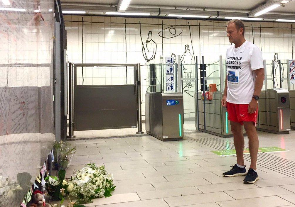 Ο Ντόναλντ Τουσκ νωρίτερα είχε καταθέσει στεφάνι στον σταθμό του Μάελμπεκ, όπου «χτύπησαν» οι τρομοκράτες, λίγη ώρα μετά από τη βομβιστική επίθεση στο αεροδρόμιο των Βρυξελλών.
