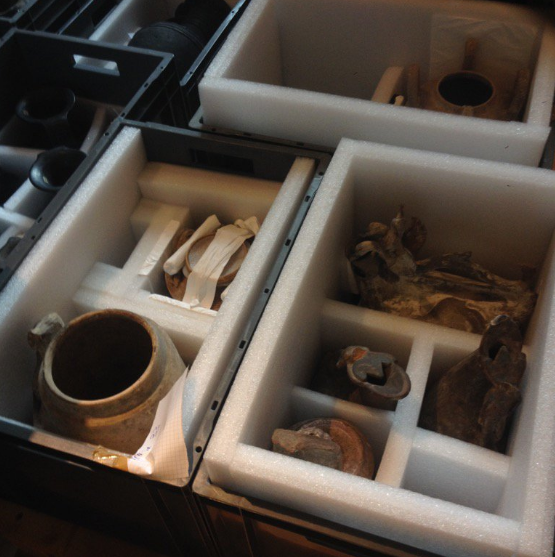 Τα εκθέματα τοποθετούνται προσεκτικά σε ειδικά διαμορφωμένες θήκες για να προστατευτούν κατά τη μεταφορά τους.
