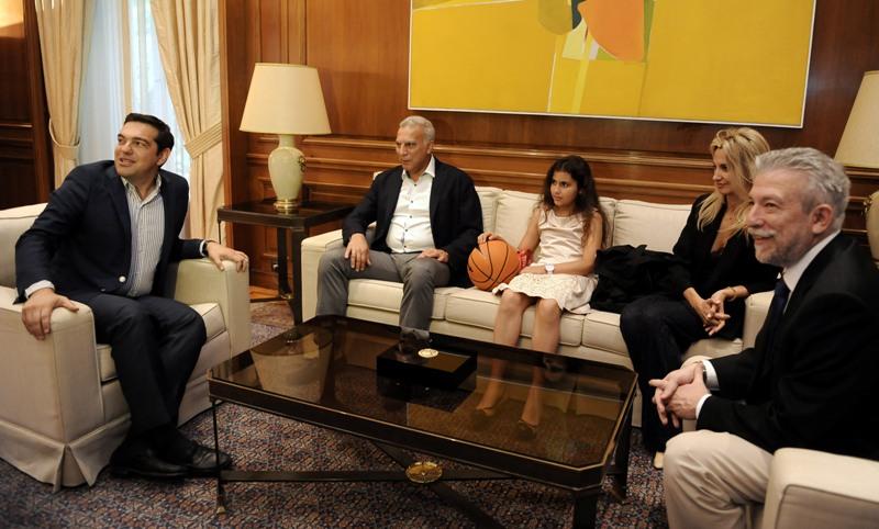 Ο πρωθυπουργός, Αλέξης Τσίπρας και ο υφυπουργός Αθλητισμού Σταύρος Κοντονής ,υποδέχθηκε στη 1 το μεσημέρι τον Νίκο Γκάλη και την οικογένεια του στο Μέγαρο Μαξίμου.