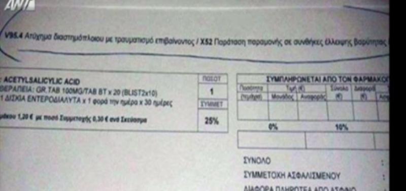 Μία διαφορετική ιατρική συνταγή παρουσίασε στην εκπομπή του ο Γιώργος Παπαδάκης. Σε αυτή την ιατρική συνταγή ο γιατρός για να δικαιολογήσει το φάρμακο, αξίας 1,20 ευρώ, που χορήγησε στον ασθενή έγραψε πάνω στην ηλεκτρονική συνταγή ως αιτιολογία «ατύχημα με διαστημόπλοιου με τραυματισμό επιβαίνοντος».