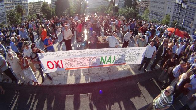 Στην συγκέντρωση κυριάρχησαν τα συνθήματα κατά της κυβέρνησης ενώ ήταν αισθητή η απουσία πολιτικών.