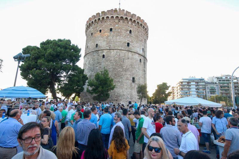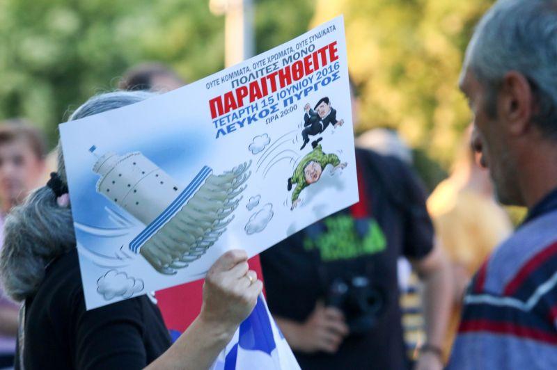 Και στη Θεσσαλονική πραγματοποιήθηκε συγκέντρωση διαμαρτυρίας κατά της κυβέρνησης με κεντρικό σύνθημα «Παραιτηθείτε» μπροστά στο Λευκό Πύργο.