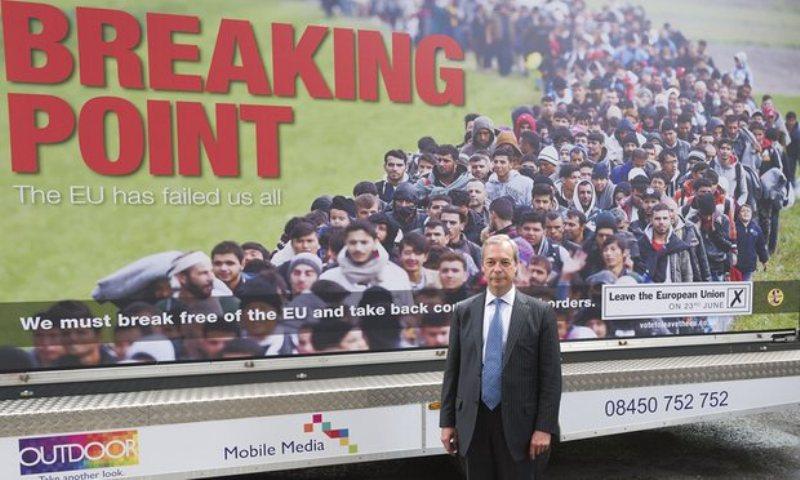 Λίγες μέρες πριν το κρίσιμο δημοψήφισμα αναφορικά με το μέλλον το Ηνωμένου Βασιλείου στην ΕΕ, ο ηγέτης του ευρωφοβικού κόμματος UKIP Νάιτζελ Φάρατζ, παρουσίασε την αφίσα του κόμματός του υπέρ του Brexit.