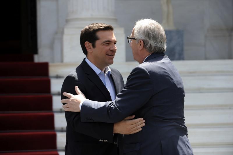Οι θερμές αγκαλιές και τα φιλιά που αντάλλαξαν στα σκαλιά του Μεγάρου Μαξίμου ο πρόεδρος της Κομισιόν Ζαν Κλοντ Γιούνκερ με τον Αλέξη Τσίπρα μονοπώλησαν τα φωτογραφικά φλας.