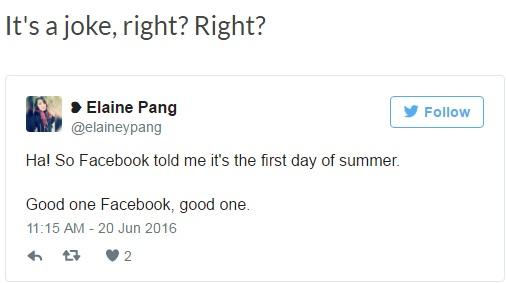 Την αντίδραση χιλιάδων Βρετανών προκάλεσε το προσωπικό μήνυμα που δέχθηκαν από το Facebook που γιόρταζε την θερινή ισημερία και ουσιαστικά την πρώτη μέρα του καλοκαιριού.