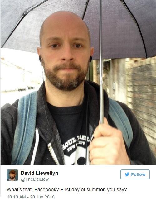 Οι περισσότεροι είπαν ότι το Facebook τους ειρωνεύεται και ανέβασαν φωτογραφίες από τους βροχερούς δρόμους του Λονδίνου.