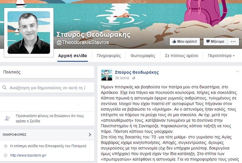 Με μια ανάρτηση στον προσωπικό του λογαριασμό στο fecebook, ο Σταύρος Θεοδωράκης μίλησε για την εποχή του Ανδρέα Παπανδρέου με αφορμή τα 20 χρόνια από το θάνατο του