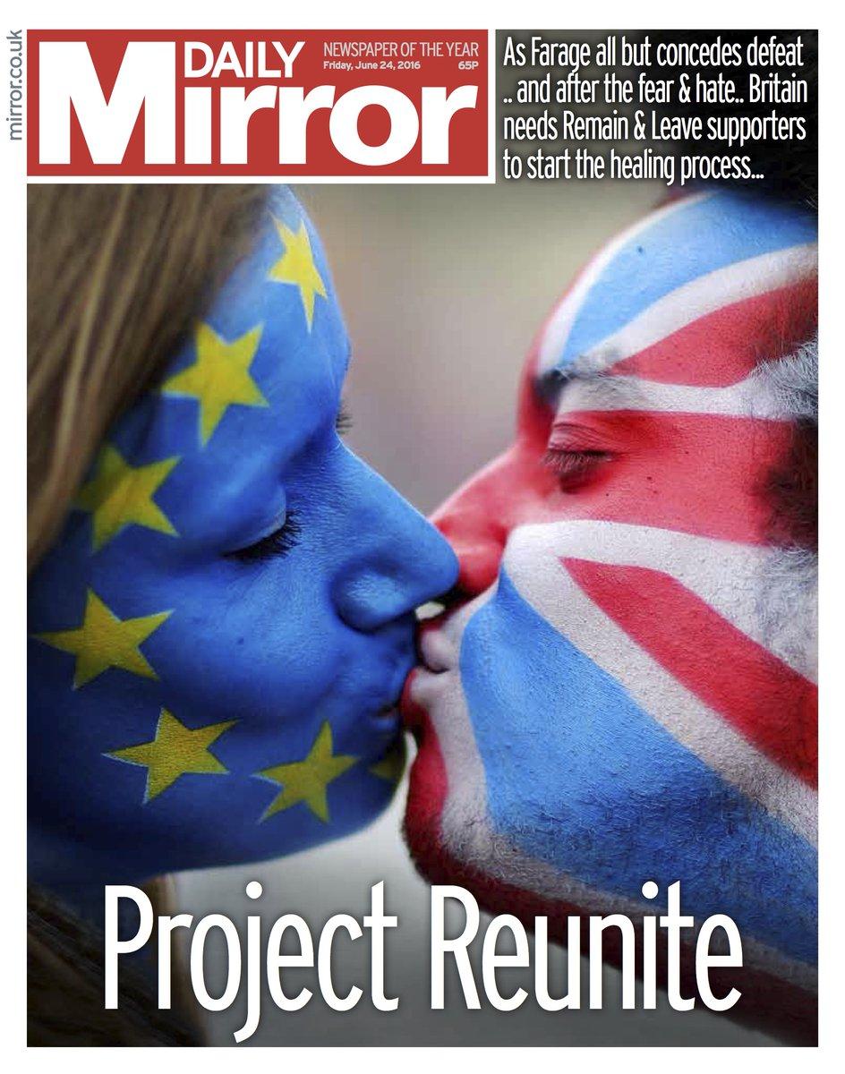 Και το πρωτοσέλιδο της Daily Mirror, που είχε ταχθεί υπέρ του Bremain: