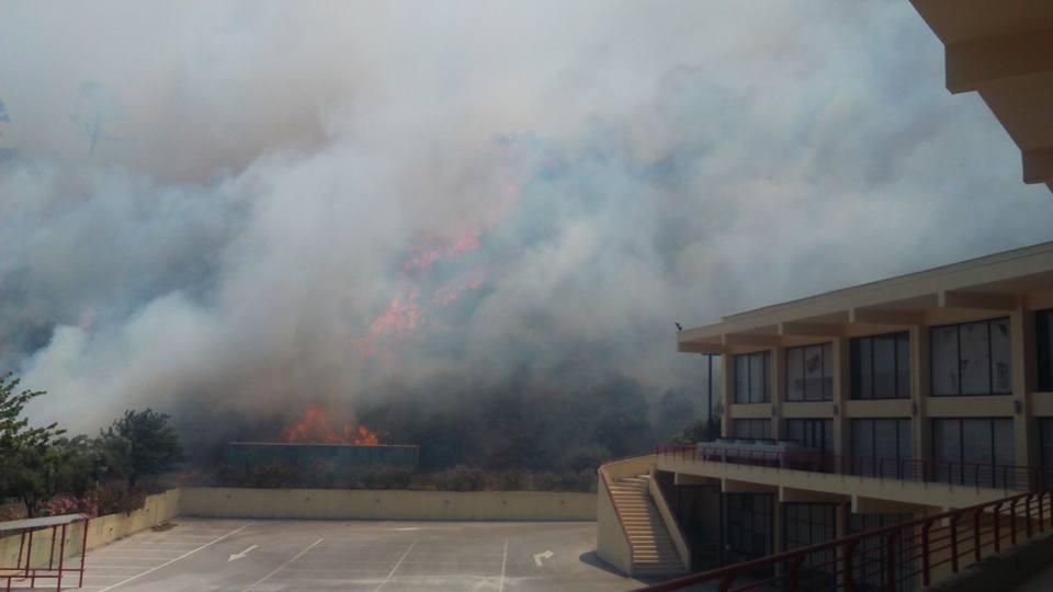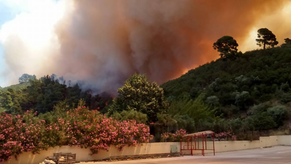Η φωτιά εκδηλώθηκε στις 13.10 στη θέση Χοντρή Ράχη, που βρίσκεται ανάμεσα στον Μαρμαρά και στο ξενοδοχειακό συγκρότημα Πόρτο Καρράς.