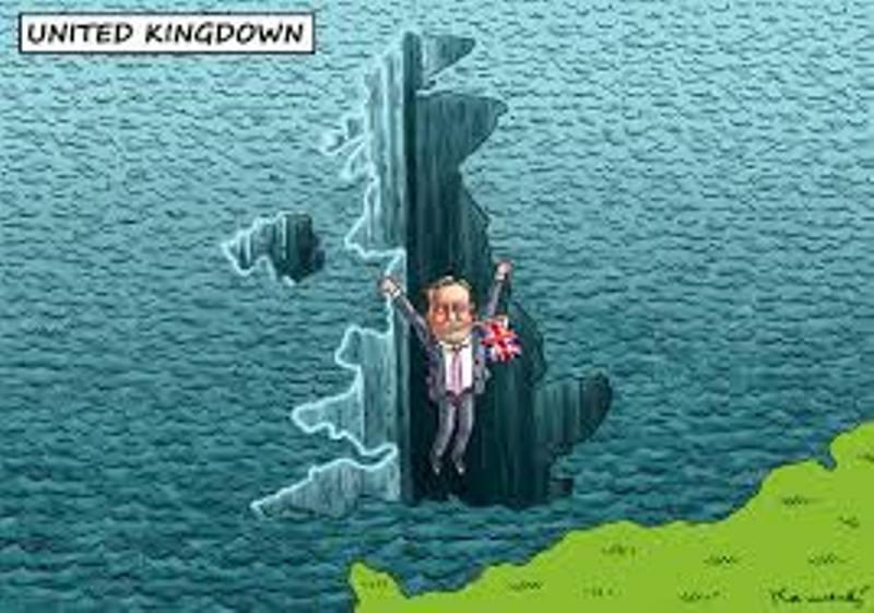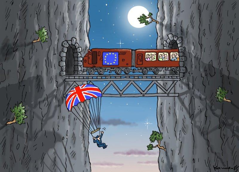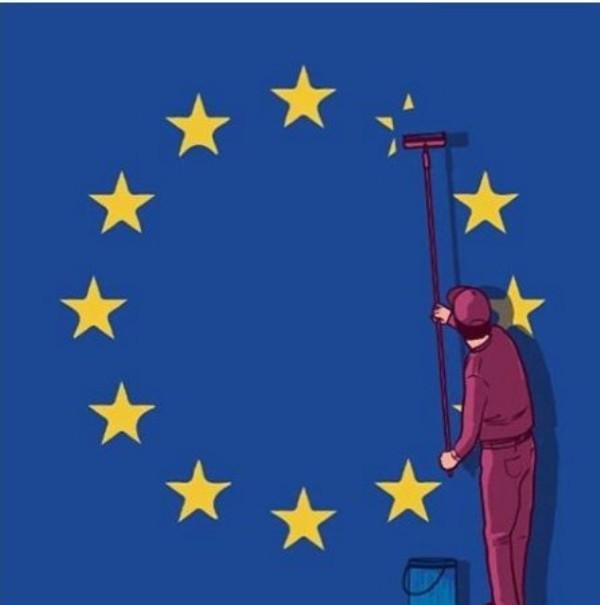 Στην αρμαθιά μπαλονιών, στο σκίτσο του αρχιτέκτονα και σχεδιαστή Αντρέα Ανιέλι, που καθένα τους αντιπροσωπεύει μια χώρα της Ε.Ε., η κλωστή του μπαλονιού “Ηνωμένο Βασίλειο” έχει μόλις κοπεί.