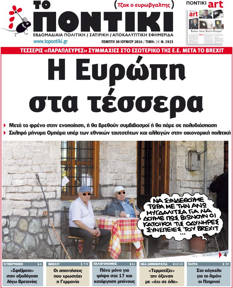 Με πρωτοσέλιδο τίτλο «Η Ευρώπη στα τέσσερα» και αναλυτικό – αποκαλυπτικό ρεπορτάζ για τις τέσσερις «παράπλευρες» συμμαχίες στο εσωτερικό της Ε.Ε. μετά το Brexit.