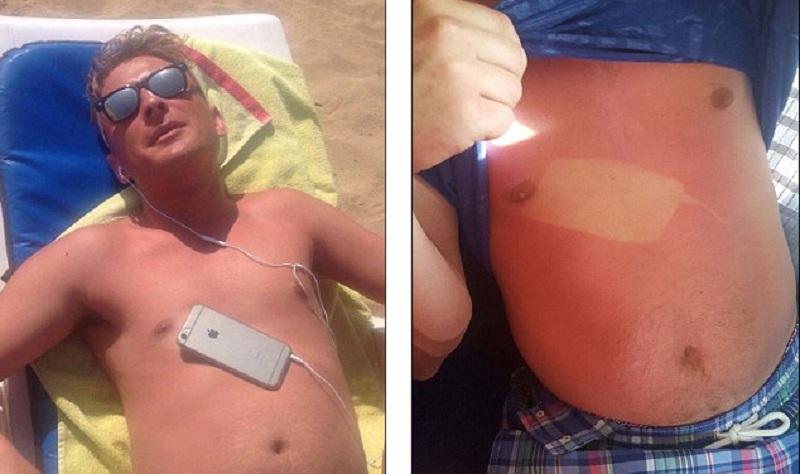 Τι μπορεί να πάθει κάποιος που ξεχνάει το i-phone του επάνω στην κοιλιά του και κάνει ηλιοθεραπεία; i-burn…