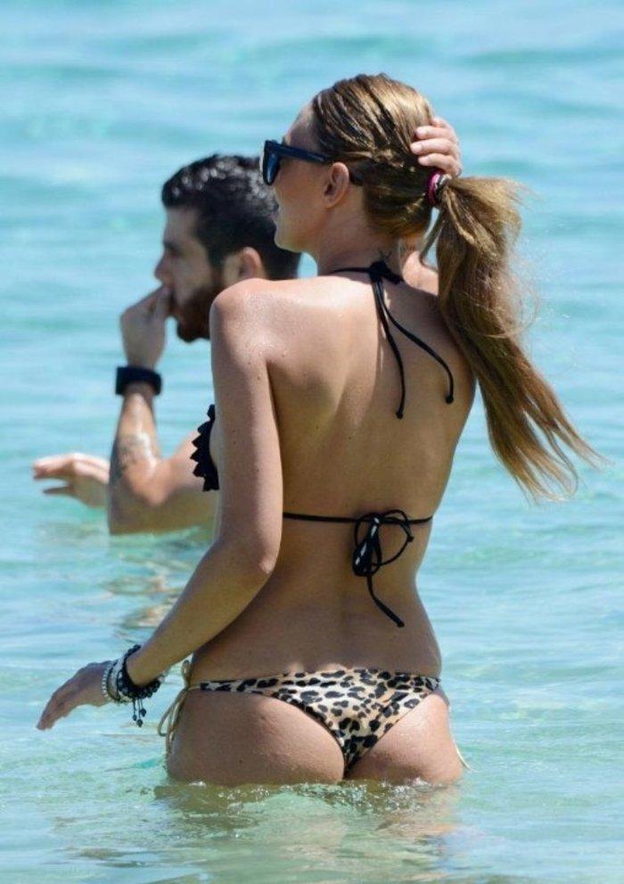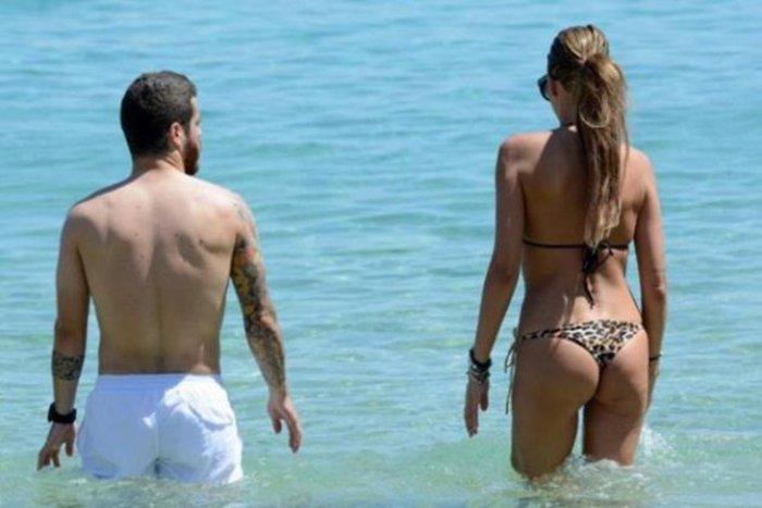 Παπαράτσι απαθανάτισαν τη σύζυγο του ποδοσφαιριστή σε ανέμελες στιγμές στην παραλία.