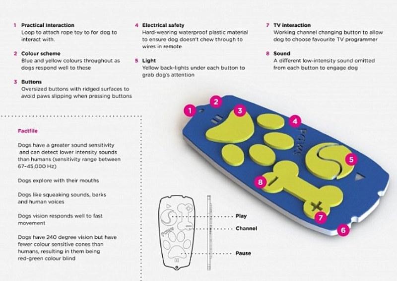 Η βρετανική εταιρεία ζωοτροφών και άλλων προϊόντων για κατοικίδια Wagg, σε συνεργασία με το Πανεπιστήμιο του Κεντρικού Λάνκασιρ, σύμφωνα με τη βρετανική «Ντέιλι Μέιλ», δημιούργησε το πρώτο τηλεκοντρόλ που επιτρέπει στους σκύλους να αλλάζουν κανάλια κατά (σκυλίσια) βούληση.