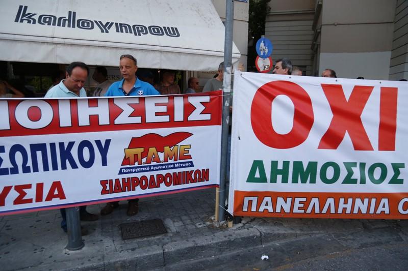 Οι εργαζόμενοι στα μέσα σταθερής τροχιάς, πραγματοποιούν από τις 8 το πρωί συγκέντρωση διαμαρτυρίας έξω από το ΤΑΙΠΕΔ. Οι εργαζόμενοι σε τρένα, προαστιακός σιδηρόδρομο, μετρό, ηλεκτρικό σιδηρόδρομο και τραμ αντιδρούν στην ιδιωτικοποίηση της ΤΡΑΙΝΟΣΕ και της εταιρείας συντήρησης της σιδηροδρομικής υποδομής ΕΕΣΣΤΥ, καθώς σήμερα κατατίθενται οι δεσμευτικές προσφορές.