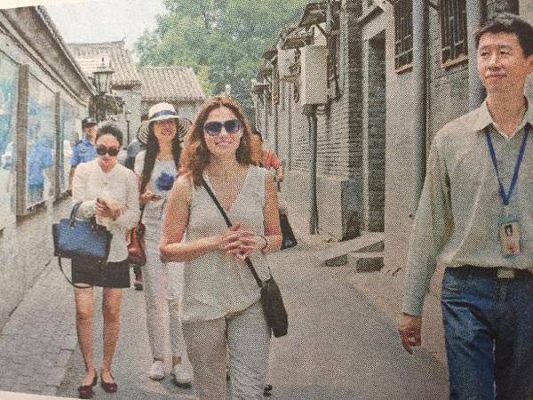 Κατά τη διάρκεια της βόλτας της στα στενά δρομάκια πίσω από τη λίμνη Χουχάι του Πεκίνου, περιοχή με παλιά παραδοσιακά σπίτια όπου έμειναν αξιωματούχοι του αυτοκράτορα και τώρα είναι κέντρο πολιτιστικής ζωής, η Μπέτυ Μπαζιάνα επισκέφτηκε το εργαστήριο ενός Κινέζου καλλιτέχνη που ασκεί την τέχνη της παραδοσιακής κινέζικης καλλιγραφίας. Η σύντροφος του Αλέξη Τσίπρα εξασκήθηκε στη γραφή και της έκαναν δώρο δυο επιγραφές με τα ονόματα των γιών της, γραμμένα στα κινέζικα.