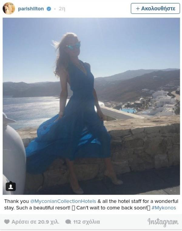 Πρόσφατα η Χίλτον βρέθηκε στη Μύκονο για τον λαμπερό γάμο της Αννα Μπεατρίζ Μπάρος με τον Αιγύπτιο μεγιστάνα και ανανέωσε το ραντεβού της μέσω διαδικτύου, «Ανυπομονώ να ξαναέρθω στη Μύκονο» πόσταρε.
