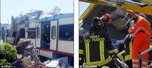 Ο απολογισμός της τραγικής σύγκρουσης δυο τρένων στην περιοχή της Απουλίας, στην Νότια Ιταλία, είναι είκοσι πέντε νεκρoοί και πάνω από πενήντα τραυματίες. Μέχρι αυτή την στιγμή, όμως, οι ιταλικές αρχές δεν θεωρούν τον απολογισμό αυτό οριστικό.