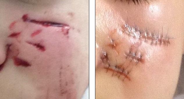 Το αγόρι χρειάστηκε να κάνει 21 ράμματα, αφού ο σκύλος, που ακούσει στο όνομα «Ντίγκμπι» γύρισε ξαφνικά και του δάγκωσε το αριστερό του μάγουλο.