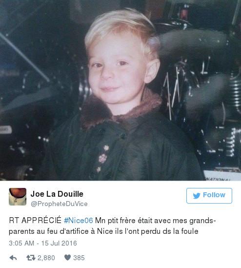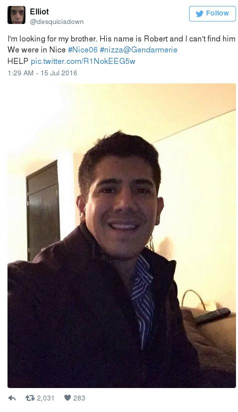 Φωτογραφίες των αγνοούμενων ατόμων που βρίσκονταν στην Νίκαια τη στιγμή της πολύνεκρης επίθεσης αναρτούν στο Τwitter με hashtag #Nice06 οι συγγενείς και φίλοι τους σε μια προσπάθεια να τους βρουν.