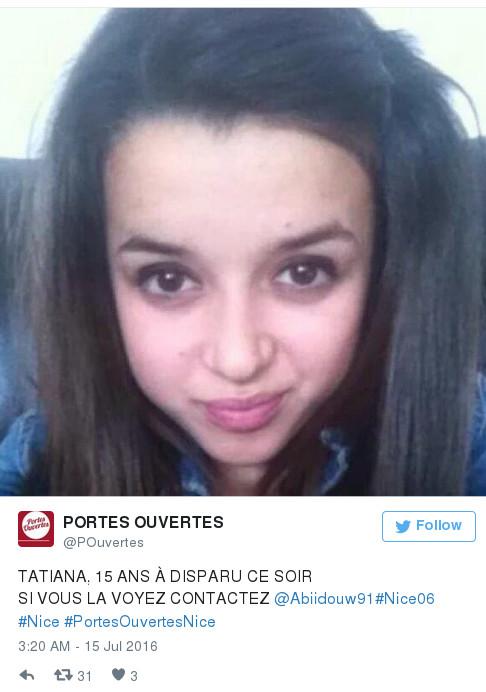 «Η αδελφή μου Λετίτσια βρισκόταν στη #Nice6 και δεν απαντάει στο τηλέφωνό της, ανησυχώ πάρα πολύ…παρακαλώ, βοηθήστε με», έγραψε μία γυναίκα στο Twitter.