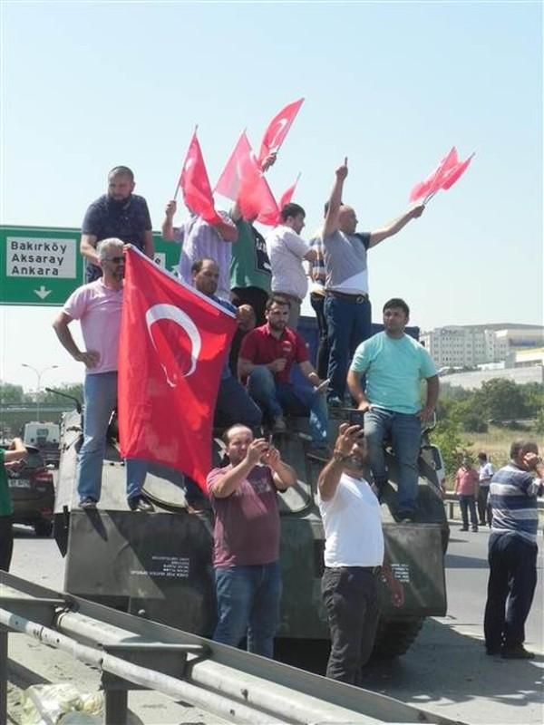 Κι όμως, συναίβει και αυτό. Υποστηρικτές του κόμματος Κόμματος Δικαιοσύνης και Ανάπτυξης οι οποίοι ανταποκριθήκαν στο κάλεσμα του Ερντογάν να βγουν στους δρόμους και να απαιτήσουν από το στρατό να φύγει από τα σημεία που είχε καταλάβει, τραβούσαν… selfie στα τανκς που βρίσκονται πάνω στην Γέφυρα του Βοσπόρου.