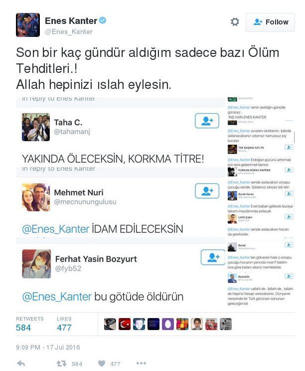 Μάλιστα, από το 2015 ο Καντέρ είχε «κοπεί» από την Εθνική ομάδα μπάσκετ επειδή υποστήριζε τον Γκιουλέν!
