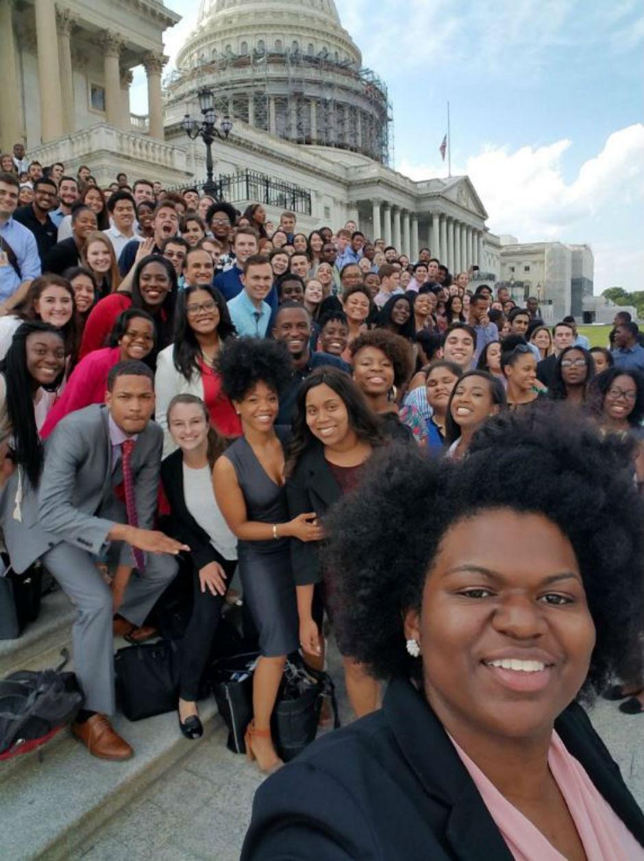 Η απάντηση των Δημοκρατικών ήρθε, επίσης, με μια selfie, από την αντίστοιχη ομάδα του κόμματος. Τη φωτογραφία έβγαλε η Αουντρα Τζάκσον, ασκούμενη στην βουλευτή των Δημοκρατικών, Εντι Μπέρνι Τζόνσον και σε αυτή απεικονίζεται η ομάδα των ασκουμένων με πολλούς Αφροαμερικανούς να πρωταγωνιστούν.