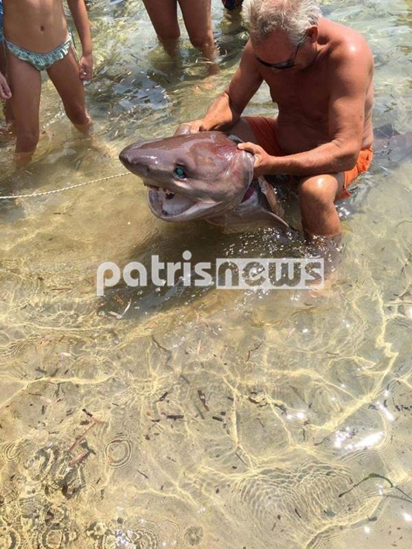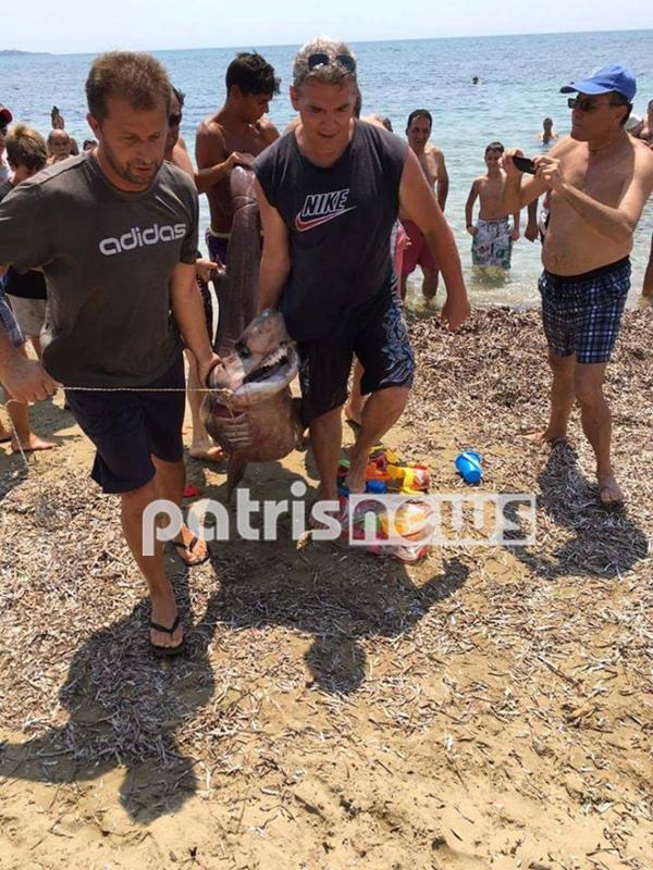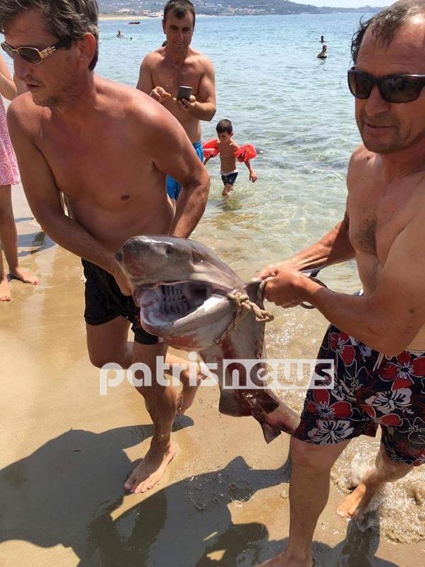 Μια ιδιαίτερα ασυνήθιστη εικόνα αντίκρισαν το πρωί της Κυριακής, οι παραθεριστές στην παραλία του Αγίου Ηλία, στον Πύργο, όταν δύο ψαράδες βγήκαν στην στεριά κρατώντας δύο «καρχαριάκια».